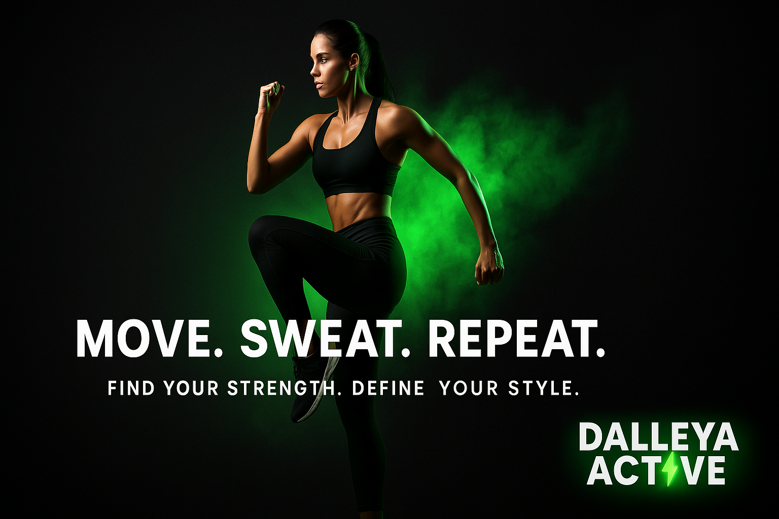 At Dalleya Active, we believe fitness is more than a workout — it’s a mindset.Our mission is to inspire women to move with power, sweat with purpose, and live with confidence.Every drop of effort brings you closer to your best self.Move. Sweat. Repeat.